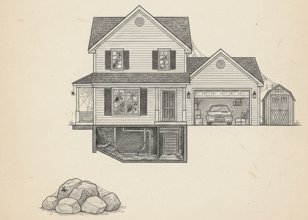 Pro Tip: Regular exterior "de-webbing" of eaves and window frames removes the pheromones that attract other spiders to the same nesting spots.